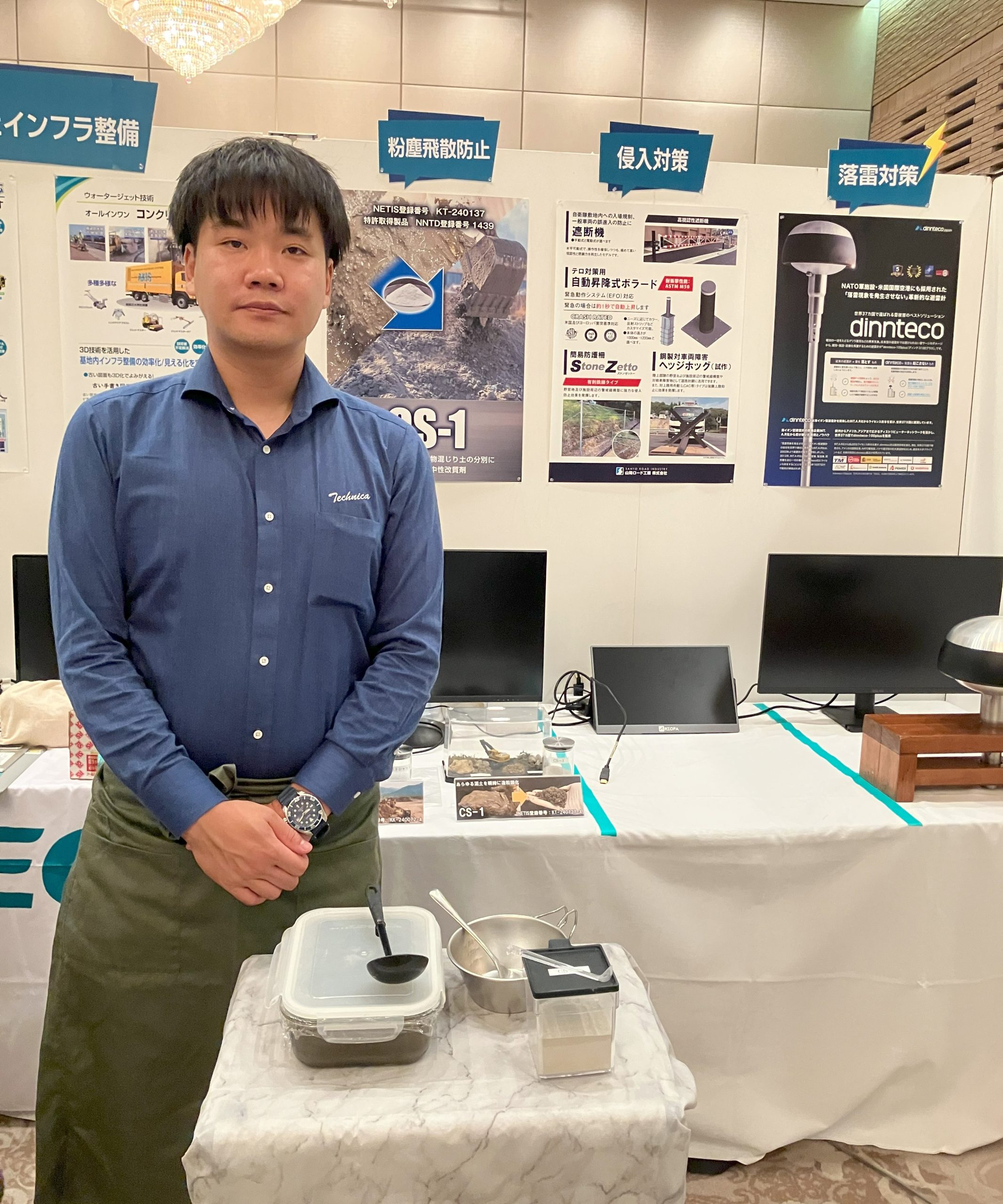 弊社は高含水土砂を即時的に粒状固化する「CS-1」や粉塵防止剤「ダストシャット」を紹介いたしました。